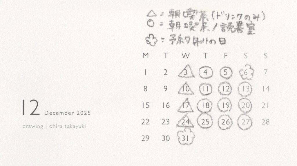 ここ数年毎回思っているのですが、やっと今年の数字(2025)に慣れたと思ったら次の年が来てしまうような感覚があります。ようやく慣れてきた2025年、あと少しですがどうぞよろしくお願いいたします。また、年始は1週間ほどお休みをいただく予定です。